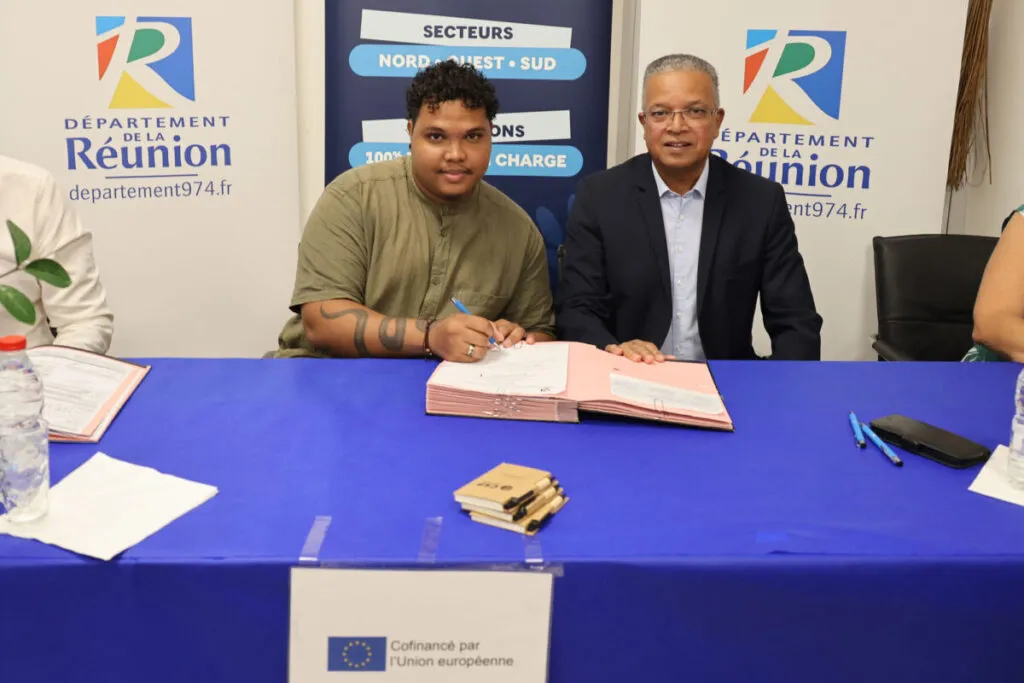 Le mercredi 13 août, le Président du Département, Cyrille Melchior, le Directeur général du GET 974, Jocelyn Dominique et la directrice régionale du CSP Formations, Stéphanie Calvet ont signé 13 contrats d’apprentissage, avec les jeunes accompagnés par la CIPI Ouest (Coordination