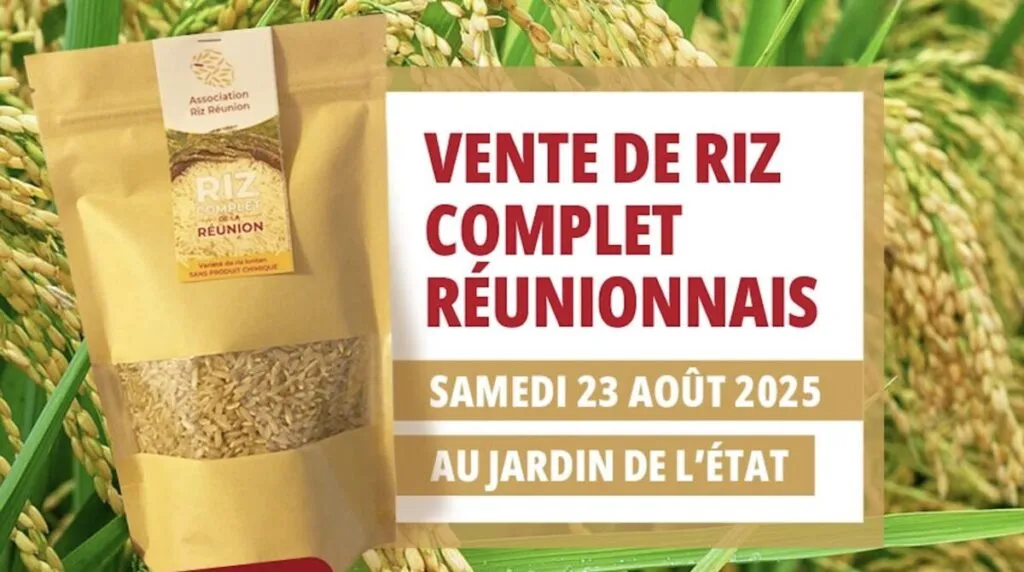 Ce samedi 23 août 2025, le Jardin de l’État à Saint-Denis accueillera une vente exceptionnelle de riz complet produit localement.