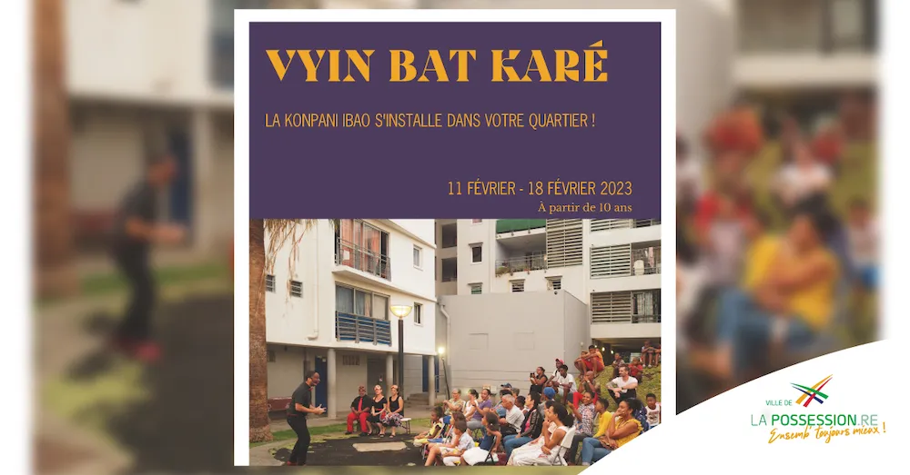 Vyin bat karé ek la Konpani Ibao dann kartyé Moulin Joli ! La konpani IBAO s’installe dans votre quartier. En partenariat avec Sakisoigne et la Kaz Fami, le Théâtre sous les Arbres vous propose plusieurs actions autour du conte « Lagbara