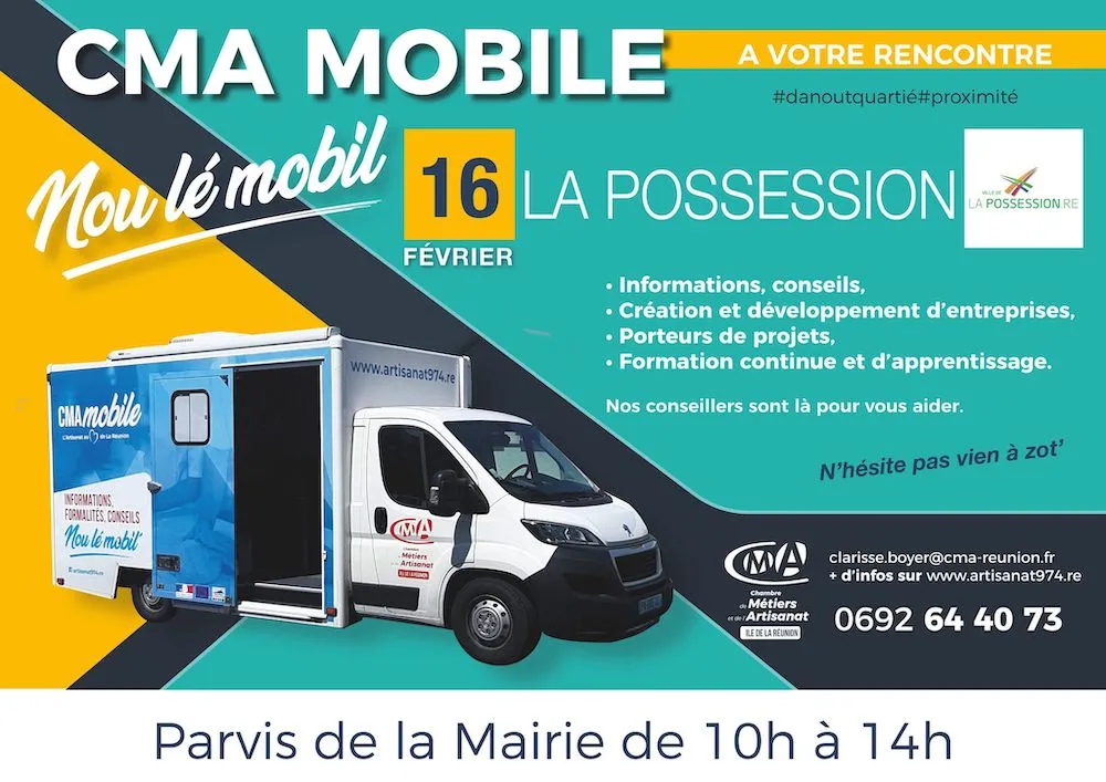 La Chambre des Métiers et de l’Artisanat de la Réunion vous invite jeudi 16 février sur le parvis de la mairie de 10h à 14h.