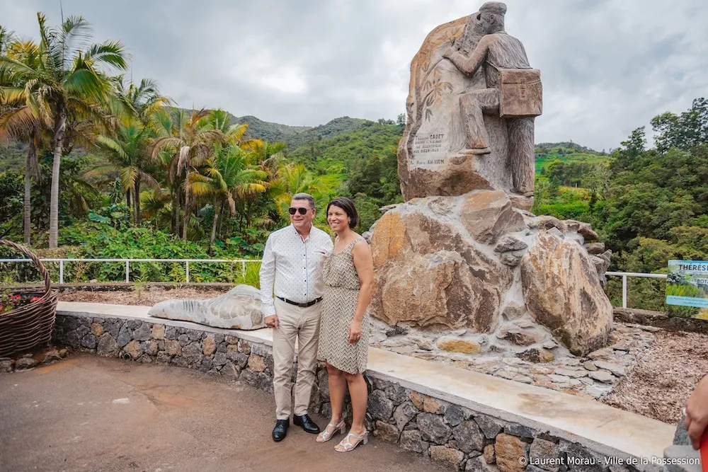 Eric FERRERE, maire des Avirons, a accompagné lundi 30 janvier, Vanessa MIRANVILLE et ses élus dans divers endroits du Tévelave : – futur emplacement de la Maison de Biodiversité, – statue de Thérésien Cadet, – aire de pique-nique. L’objectif de