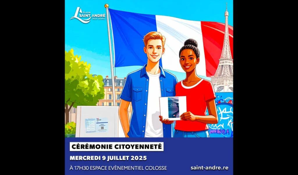 VOUS ÊTES NOUVEL ÉLECTEUR À SAINT-ANDRÉ ? VOUS ÊTES MAJEUR CE MESSAGE EST POUR VOUS ! Vous avez reçu une invitation à la Cérémonie de Citoyenneté ? Alors rejoignez-nous ce mercredi 9 juillet 2025 à 17h30 à l’Espace Événementiel du