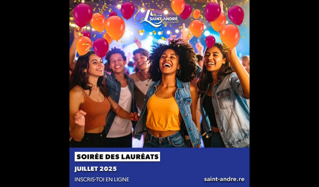 SOIRÉE DES LAURÉATS 2025 T’as eu ton BAC, ton BAC PRO, ton BEP ou ton CAP ? La Ville de Saint-André te félicite et t’invite à LA soirée des Lauréats, le 25 juillet, au Parc du Colosse, à partir de