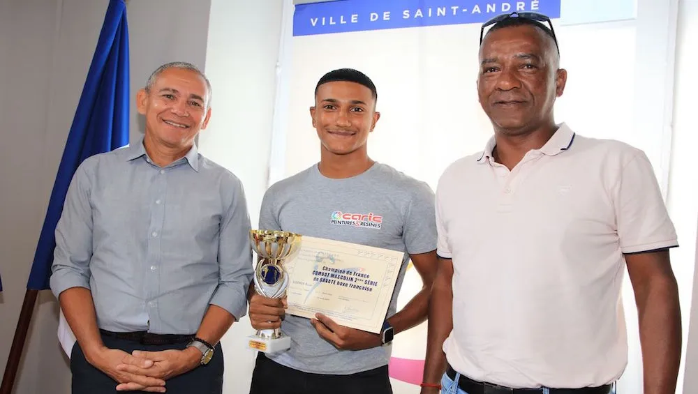 Ce lundi 3 avril, le maire Joé Bédier et l’élu aux Sports et Vie Associative, Jean-Paul Constant, ont reçu le jeune saint-andréen Roan Viraman à l’Hôtel de Ville.