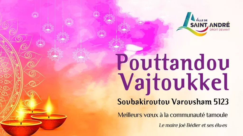 » Le Maire, Joé Bédier et le Conseil Municipal souhaitent une bonne année 5123 à toute la communauté tamoule de Saint-André et de La Réunion.