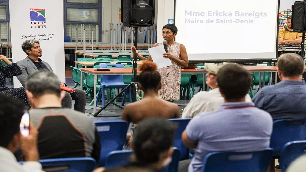 Ce jeudi 24 novembre, une reunion d’information publique s’est tenue en présence de Madame La Maire, Ericka Bareigts et la sous-préfète en charge de la cohésion sociale et de la jeunesse, Christine Torres, afin de présenter aux copropriétaires et habitants,