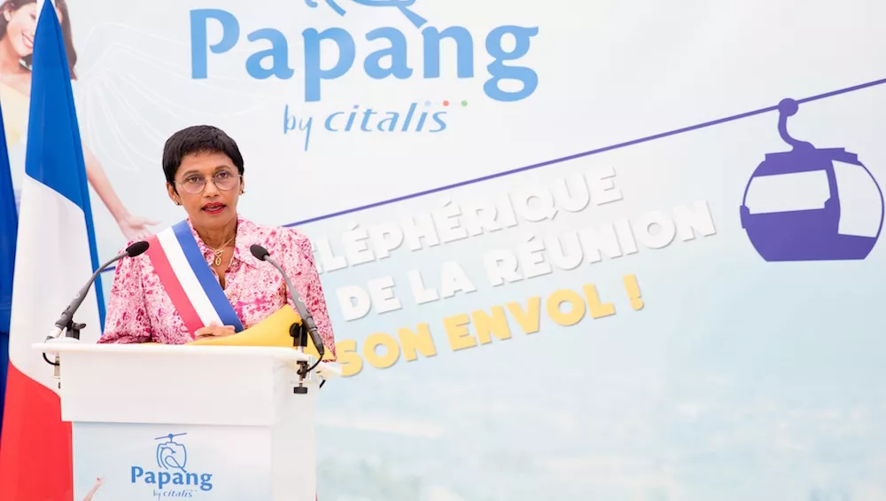 Le premier téléphérique urbain de la Réunion « Papang », avec ses 46 cabines de dix places assises, accueille depuis mardi les voyageurs sur les 2,7 kilomètres de ligne reliant le Chaudron à Bois de nèfles.