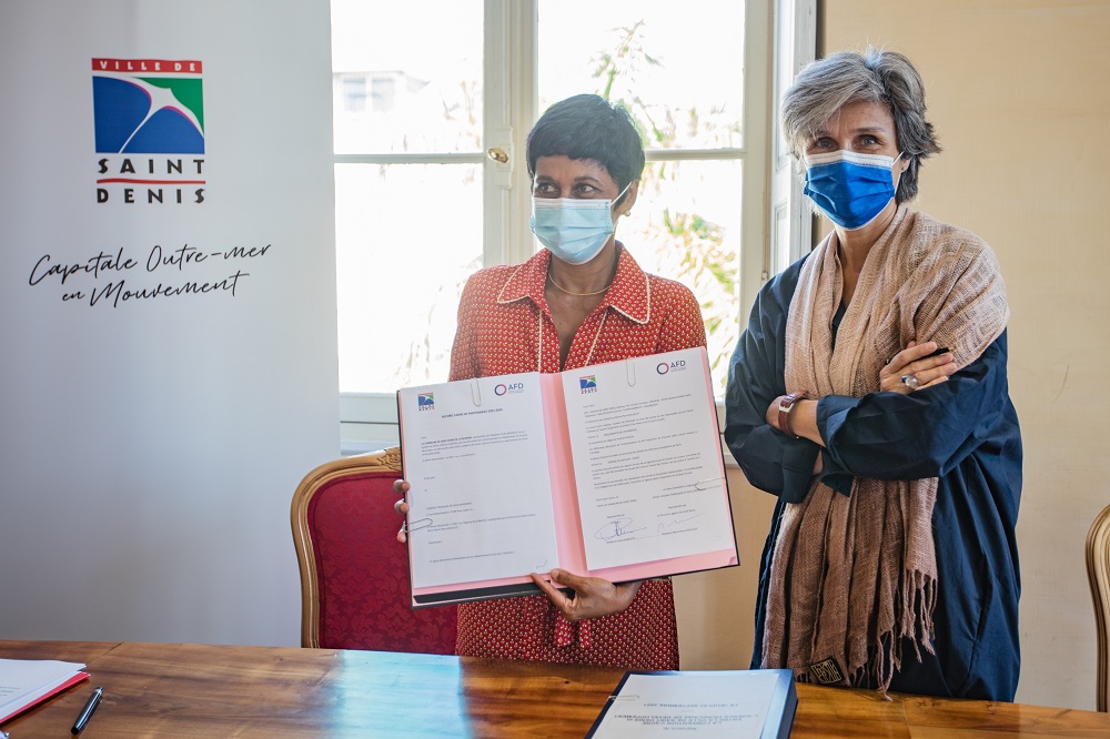La maire de Saint-Denis, Ericka Bareigts et la directrice de l’Agence Françaisev de Développement (AFD) Réunion – TAAF, Marie-Pierre Nicollet, signent ce jeudi 02 septembre une convention de partenariat pour la période 2021-2024 afin d’œuvrer conjointement pour le développement social