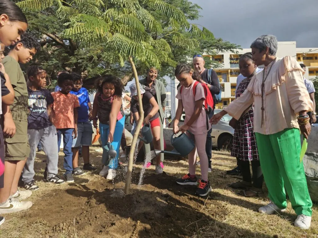 Cet après-midi, un petit flamboyant a été planté sur l’îlot Flamboyant, rue Théodore Chasseriau au Chaudron.