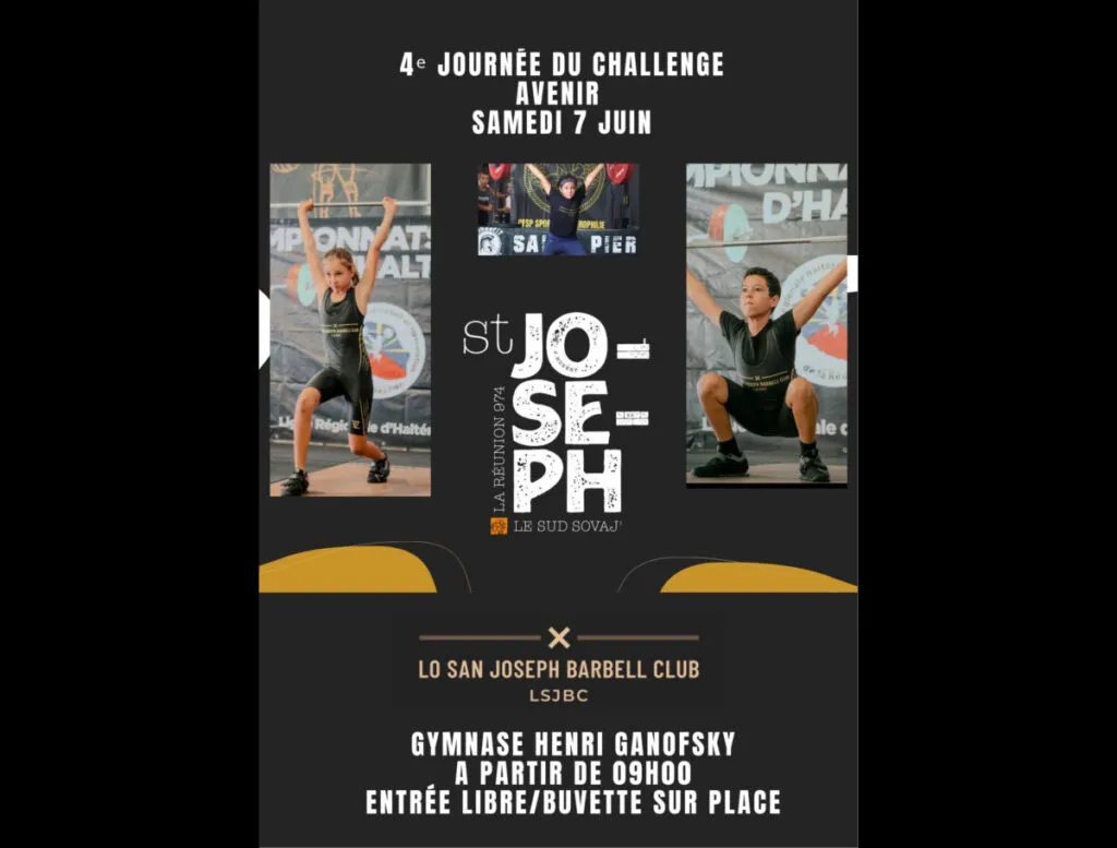 Le Lo San Joseph Barbell Club vous donne rendez-vous le samedi 7 juin 2025 au Gymnase Henri Ganofsky pour la 4ᵉ journée du Challenge Avenir, dédiée aux jeunes haltérophiles de La Réunion.