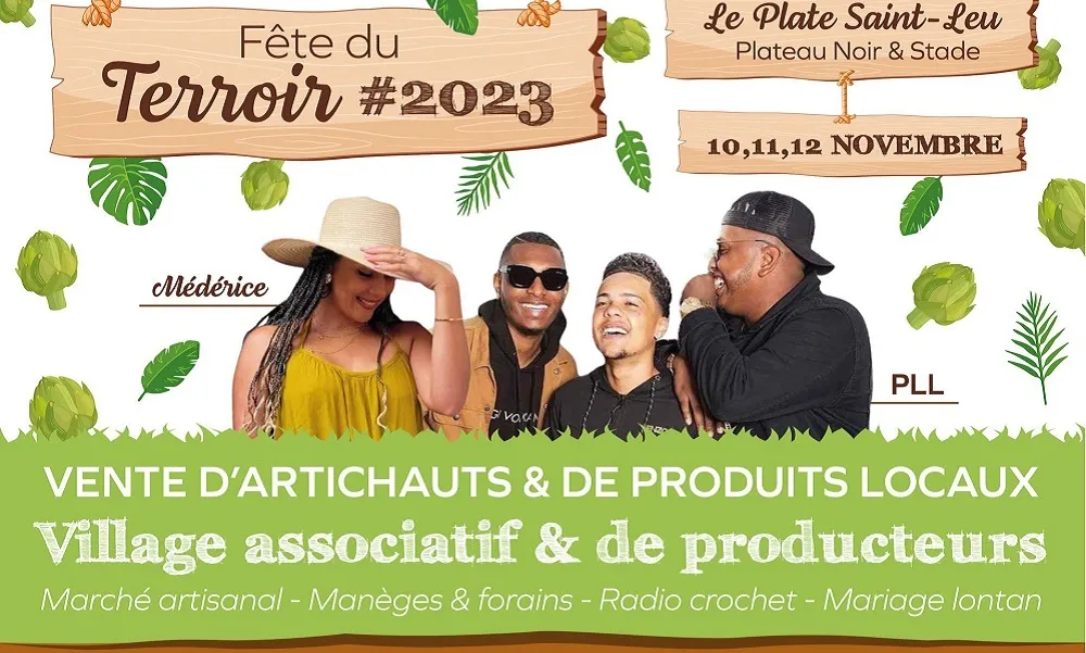 Ce week-end, du 10 au 12 novembre 2023, le Plate Saint-Leu vous attend pour fêter le Terroir dans tous ses états, ses productions, son savoir-faire péi… Retrouvez sur le plateau noir et le stade du Plate Saint-Leu, un village associatif et des producteurs