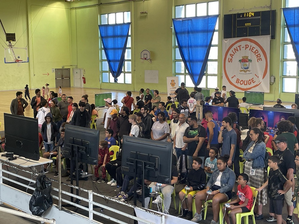 Aujourd’hui, samedi 20 juillet, le gymnase de Terre-Sainte est en ébullition ! Depuis ce matin, à 9h30, les passionnés de jeux vidéo se retrouvent pour une journée exceptionnelle. Emmanuel, un joueur enthousiaste, nous partage son expérience : « L’ambiance ici est