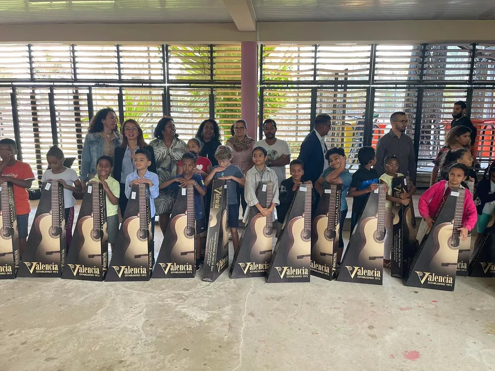 Ce mardi 22 septembre 2022 a eu lieu la remise des guitares aux 22 élèves de l’école Jean Jaurès de Saint-Pierre, en présence des parents, des bailleurs sociaux, des enseignants et représentants de l’éducation nationale et des élus. Un des