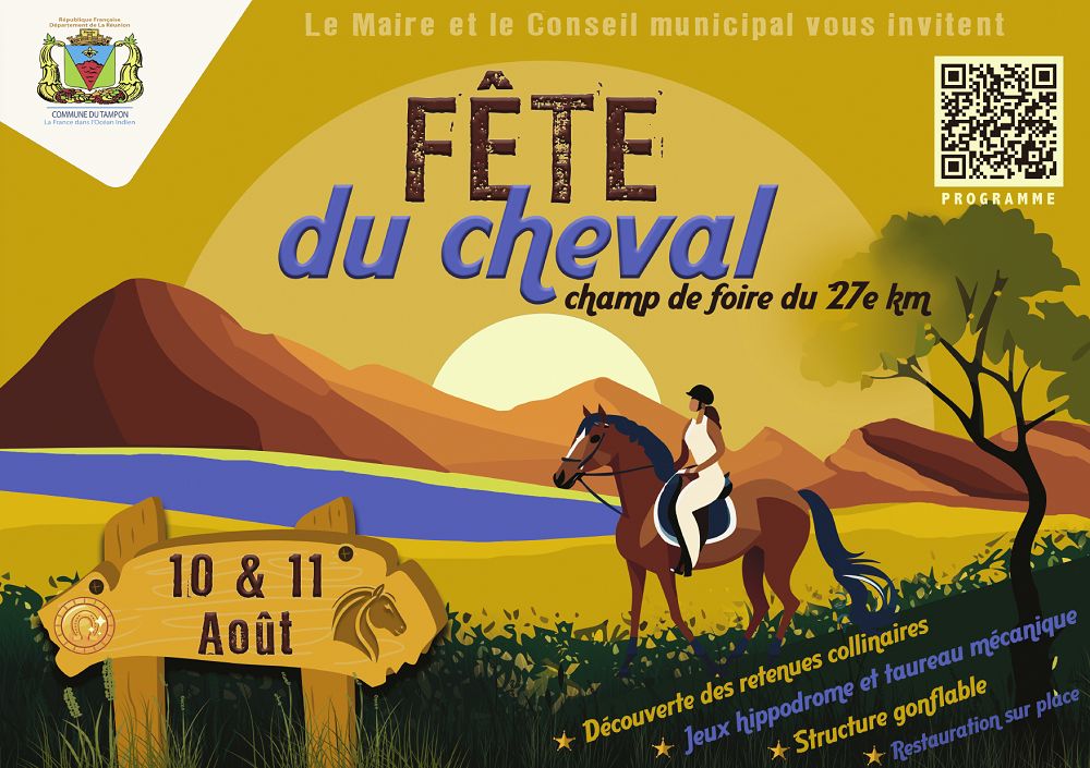La ville du Tampon organise la fête du cheval le week-end du 10 et 11 août de 9h à 18h au champ de foire du 27e km à la Plaine des Cafres !