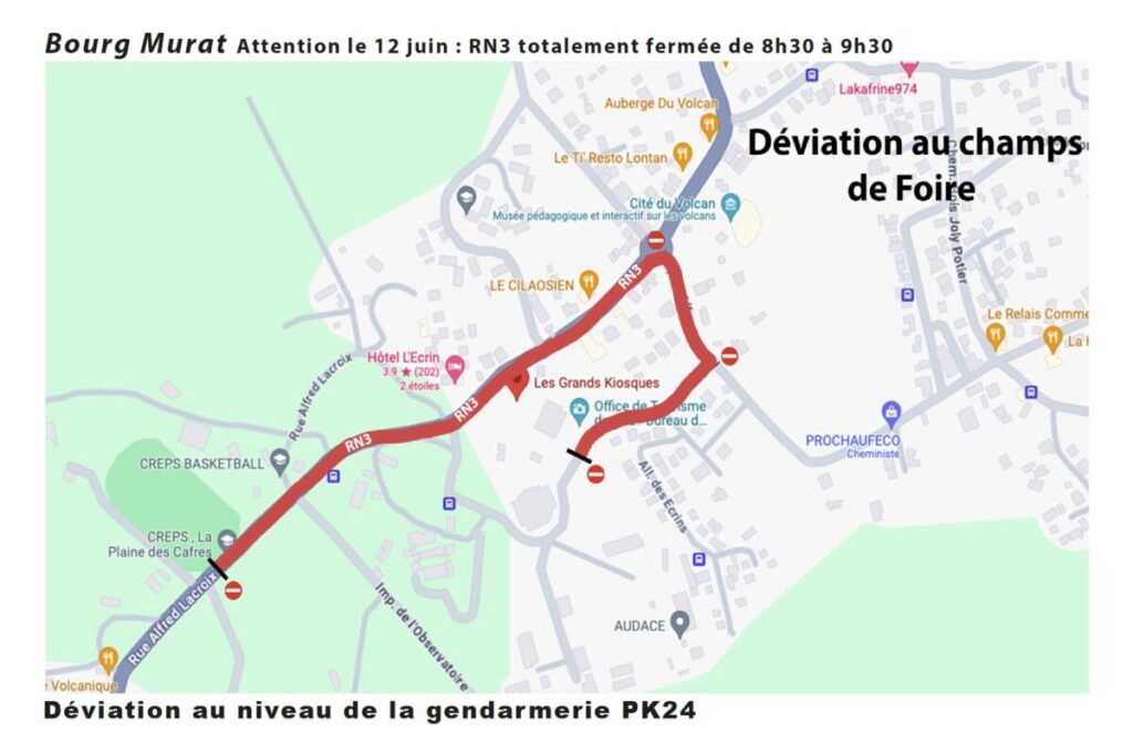 La Municipalité du Tampon vous informe de la fermeture de la RN3 le mercredi 12 juin 2024.