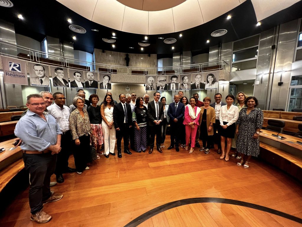 Aux côtés du Préfet de La Réunion, Jérôme FILIPPINI, de la Présidente de la Région Réunion , Huguette BELLO, du Président du Conseil du Département de La Réunion , Cyrille MELCHIOR, de la Présidente du Conseil de Surveillance du Grand Port Maritime de La Réunion,