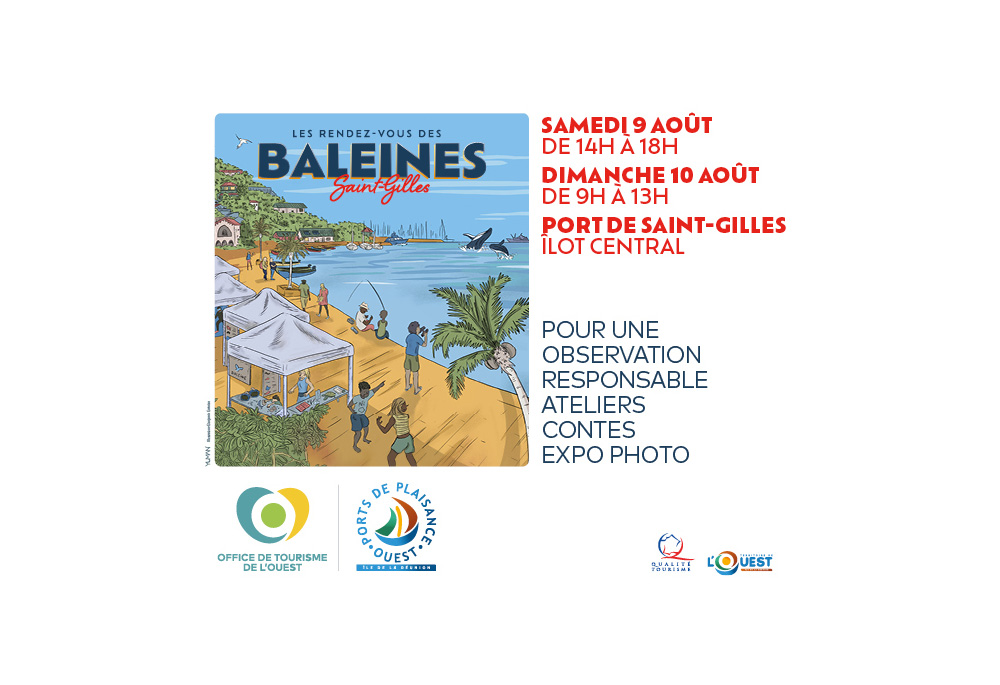 Les Ports de Plaisance Ouest, en partenariat avec l’Office de Tourisme Intercommunal de l’Ouest, organisent des journées d’animation sur l’observation des baleines les samedi 09 et dimanche 10 août 2025 au port de Saint-Gilles. L’édition de cette année met l’accent sur
