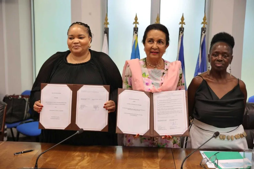 La Présidente de la Région Réunion Huguette Bello et la Vice-ministre des Sports, des Arts et de la Culture de la République d’Afrique du Sud Bertha Peace Mabé ont signé ce vendredi 19 décembre, à l’Hôtel de Région, une déclaration