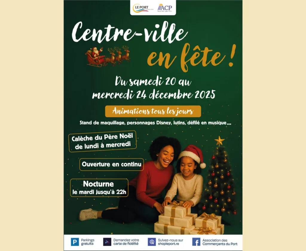 Du samedi 20 au mercredi 24 décembre, le centre-ville du Port se transforme en véritable village de Noël pour le plus grand plaisir des petits et des grands.
