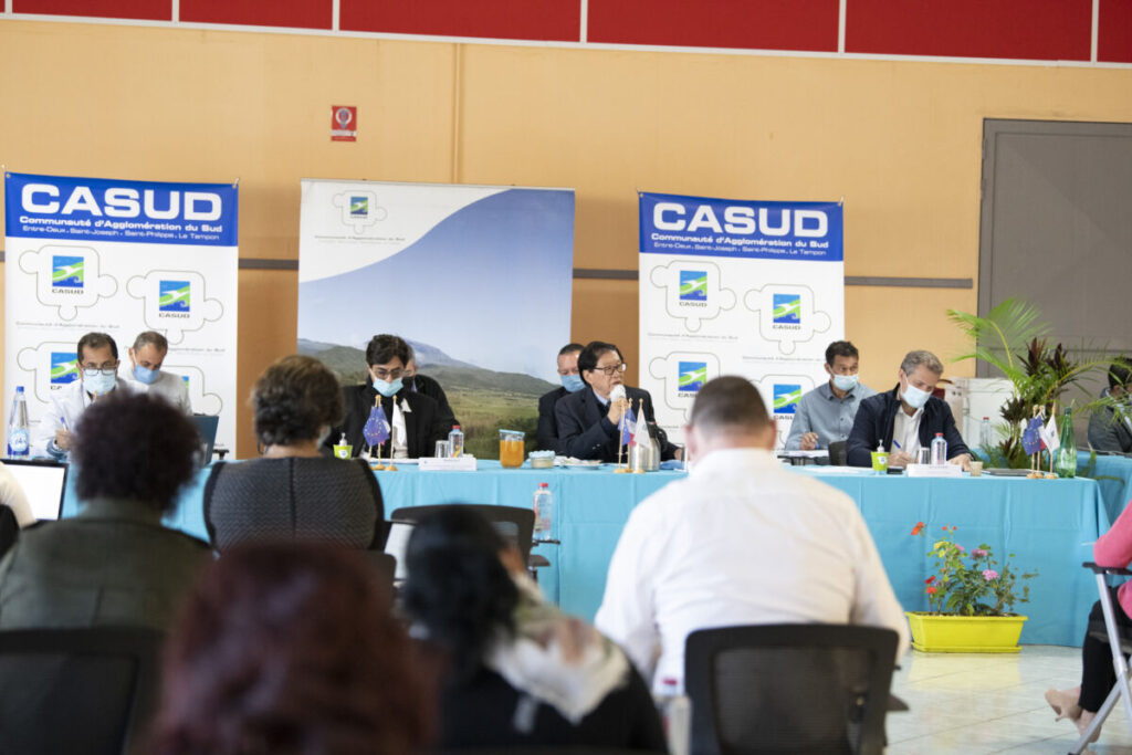 André THIEN AH KOON, Président de la CASUD a réuni, ce vendredi 16 juillet 2021 à la salle des fêtes du 12 ème km au Tampon, le conseil communautaire de la Communauté d’Agglomération du Sud pour l’examen de 27 dossiers.