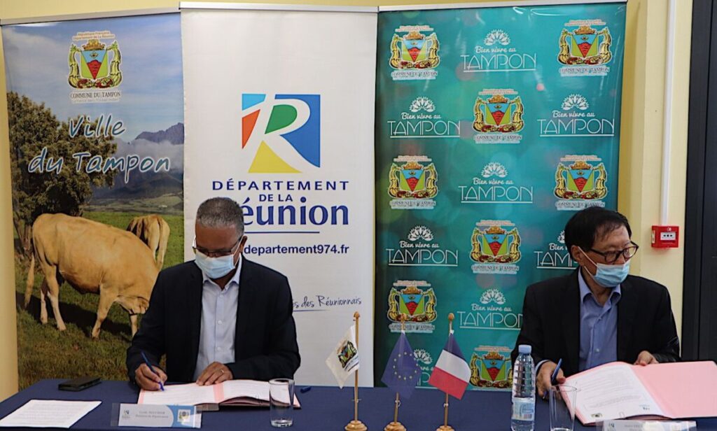 Lundi 29 mars une convention a été signée entre André Thien Ah Koon, Maire du Tampon et Cyrille Melchior, Président du Département.