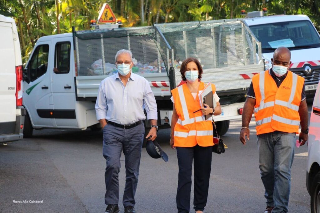 L’équipe environnement de collecte des corbeilles papier a eu la surprise de voir se joindre à elle, lors de sa tournée matinale sur les quartiers du chef-lieu, le Président Maurice Gironcel et la DGS Rosita Hoarau. Une occasion pour eux