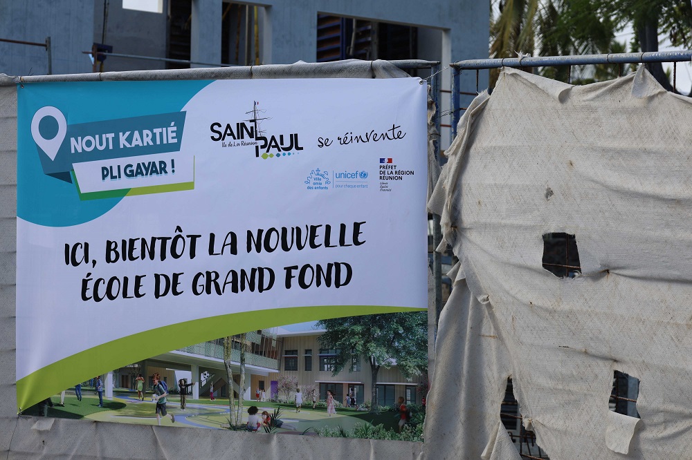 Ce matin du 31 mai, le chantier de la nouvelle école de Grand Fond a accueilli une visite officielle en présence du maire Emmanuel Séraphin et des élus du conseil municipal de Saint-Paul.