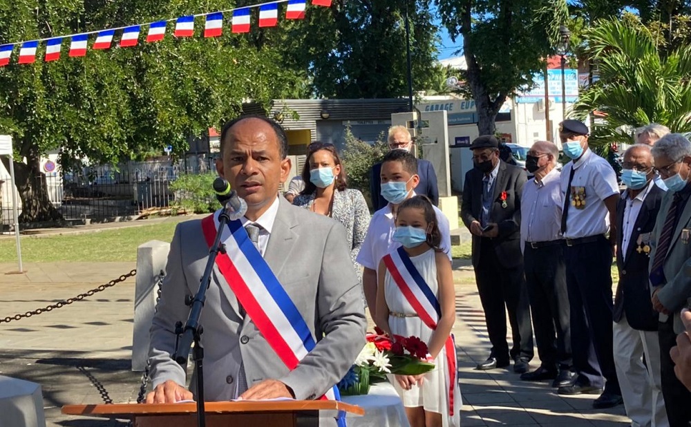 A Saint-Paul, la cérémonie de commémoration adaptée au protocole sanitaire s’est déroulée en présence de la Sous-Préfète, Sylvie CENDRE, de Jude BARET, président de la section locale des Anciens combattants et des Victimes de Guerre et des enfants du Conseil