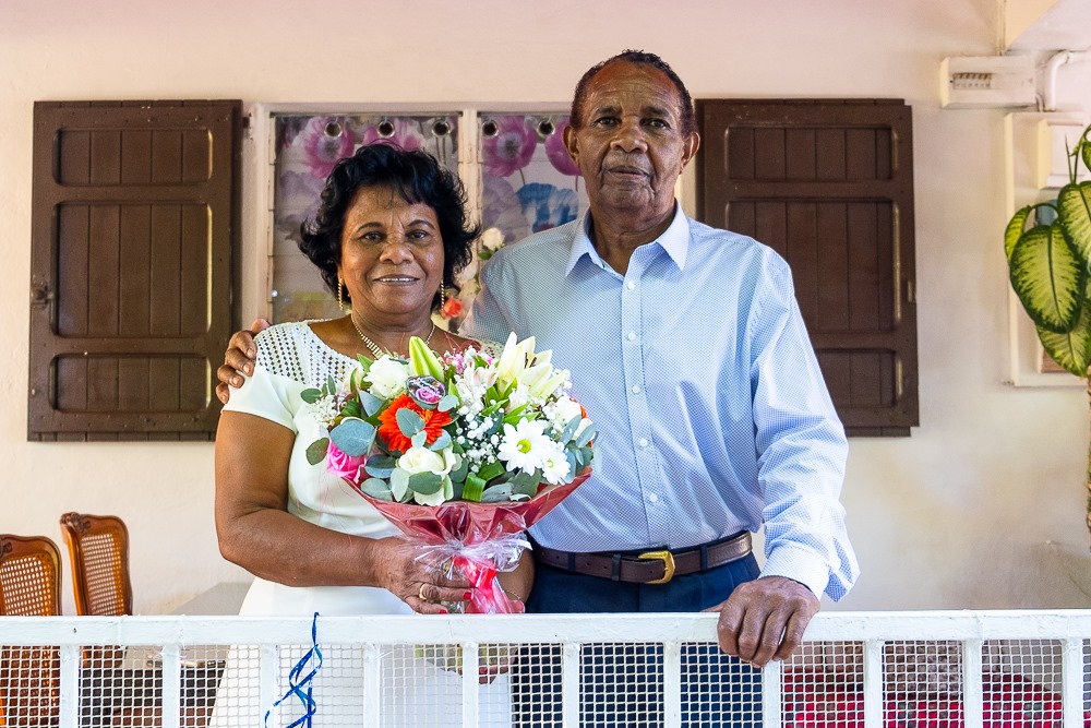 Les époux SAÏDOU fêtent leurs noces d’or à Plateau Caillou Mariés le 18 avril 1971, Henry Alexin et Ruffine SAÏDOU, respectivement 72 et 67 ans, ont reçu la visite de Marie-Bernadette MOUNIAMA CUVELIER et Jean-Noël JEAN-BAPTISTE, venus leur remettre un