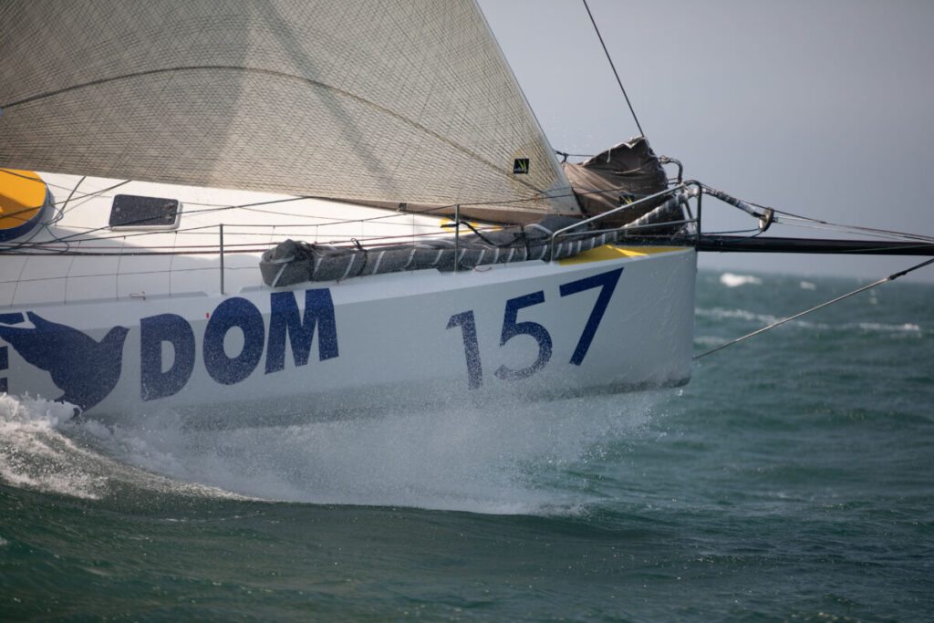 Les Class 40 continuent de se bagarrer au plus proche des côtes bretonnes. Aucun bateau ne se détache de la flotte pour l’instant et le classement ne cesse d’évoluer. Les équipages tentent encore de trouver la meilleure porte de sortie