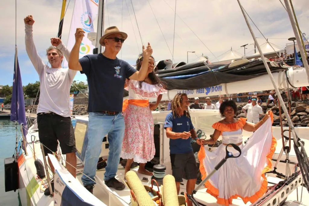 Le bateau Free Dom a fait son grand retour à la darse du Port, accueilli dans une ambiance de folie par un public venu nombreux saluer les skippeurs après leur incroyable traversée.