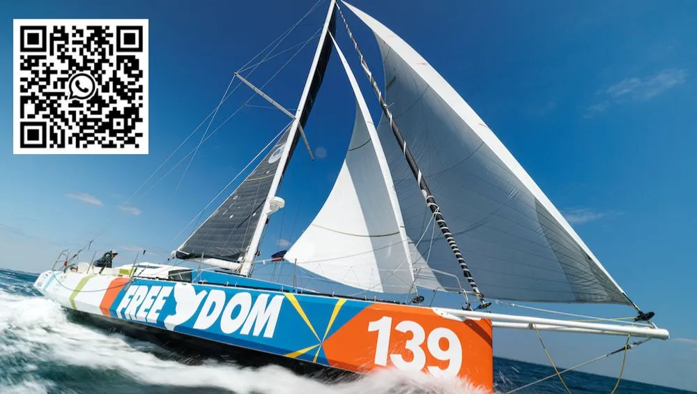 “Issez les voiles, matelots !” À quelques jours du grand départ, l’ambiance monte d’un cran autour du Class40 Free Dom HUA. Dès demain, la chaîne WhatsApp du bateau vous donnera accès à des contenus inédits venus tout droit du ponton