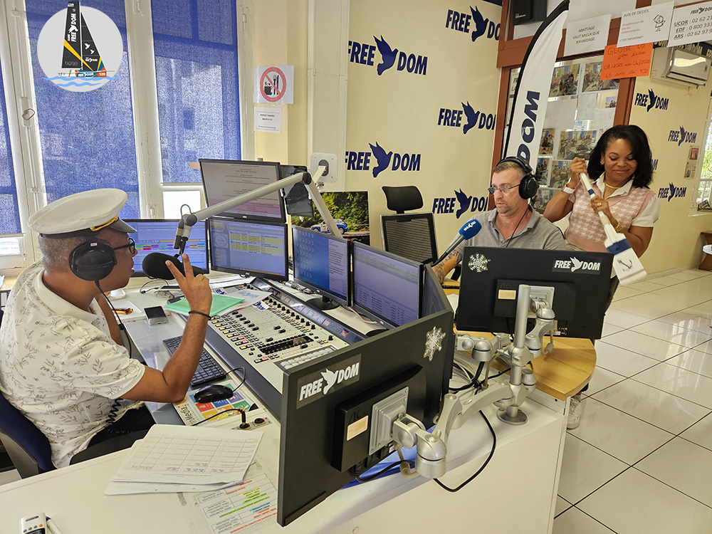 ⛵ Le bateau Free Dom accueilli à Cadix… par un auditeur venu de Barcelone ! Quelle ambiance sur les pontons de Cadix à 4h du matin ! À l’arrivée du bateau Free Dom, engagé dans le Globe40, un auditeur réunionnais,