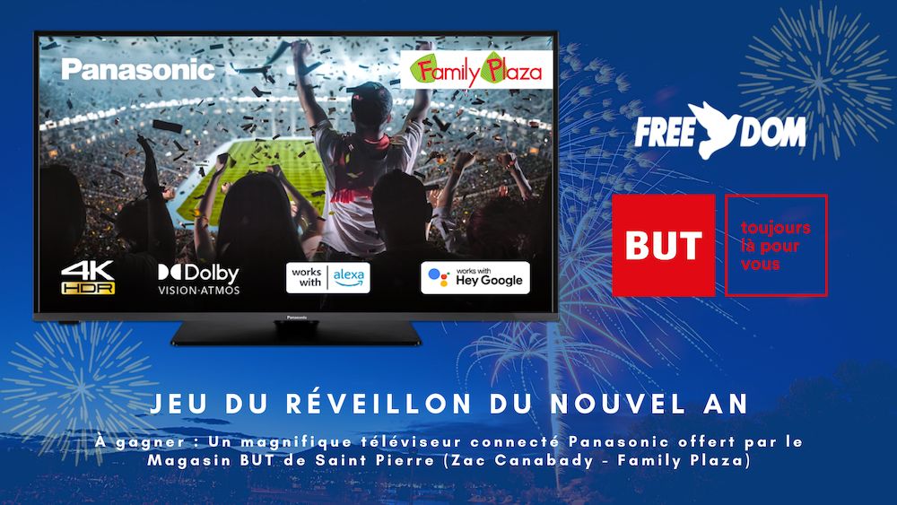 On adore vous offrir des cadeaux sur Free Dom. Avec notre grand jeu du Réveillon du Nouvel An 2022 : tentez , ce samedi 31 décembre de 20h à 03h, de gagner un magnifique téléviseur connecté Panasonic d’une valeur de
