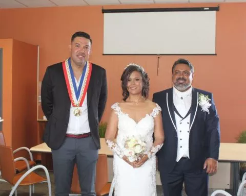 Séquence émotion à L’Hôtel de Ville de l’Étang-Salé, ce samedi 05 mars 2022, où Monsieur Le Maire franchement élu : Mathieu Hoarau, a procédé à la célébration de son premier mariage en tant qu’Officier d’Etat civil. M. Le Maire a