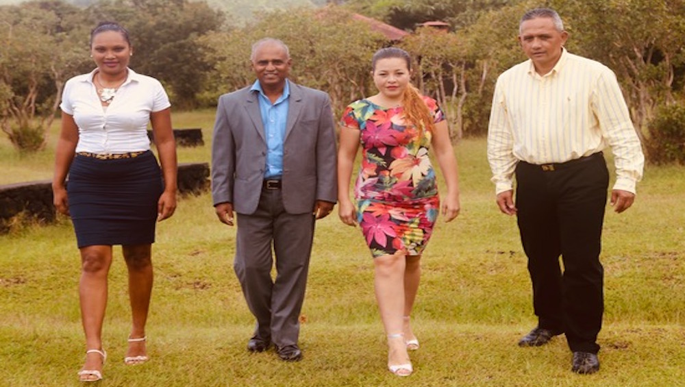 « Nous présentons une équipe d’experts pour le troisième canton de La Possession. Cette équipe est composée de Christophe Dambreville (chemise blanche et cravate sur la photo) de Une), adjoint aux questions agricoles; Fabiola Lagourde (robe jaune à l’extrême gauche
