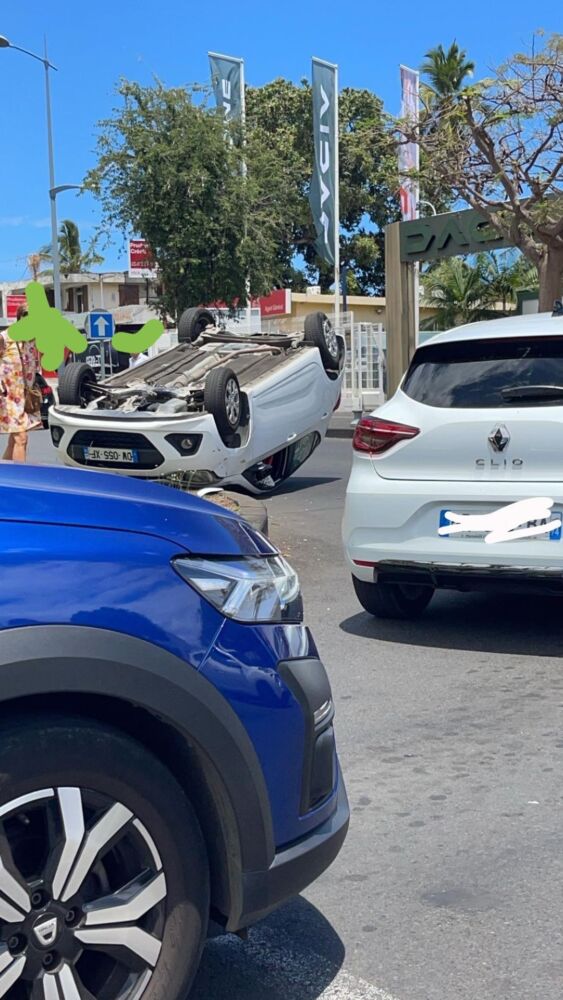 Un accident spectaculaire s’est produit dans le centre-ville de Saint-Paul, où un véhicule a terminé sa course sur le toit. Les autorités recommandent la plus grande prudence aux usagers de la route dans ce secteur, particulièrement en ce jour de week-end où la circulation est dense.