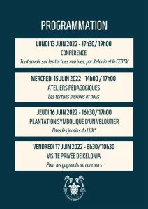 Depuis quelques années les tortues marines font leur retour dans les lagons de La Réunion, le LUX en partenariat avec Kelonia organise une semaine pour sensibiliser les usagers du lagon de la Saline et l’Hermitage: