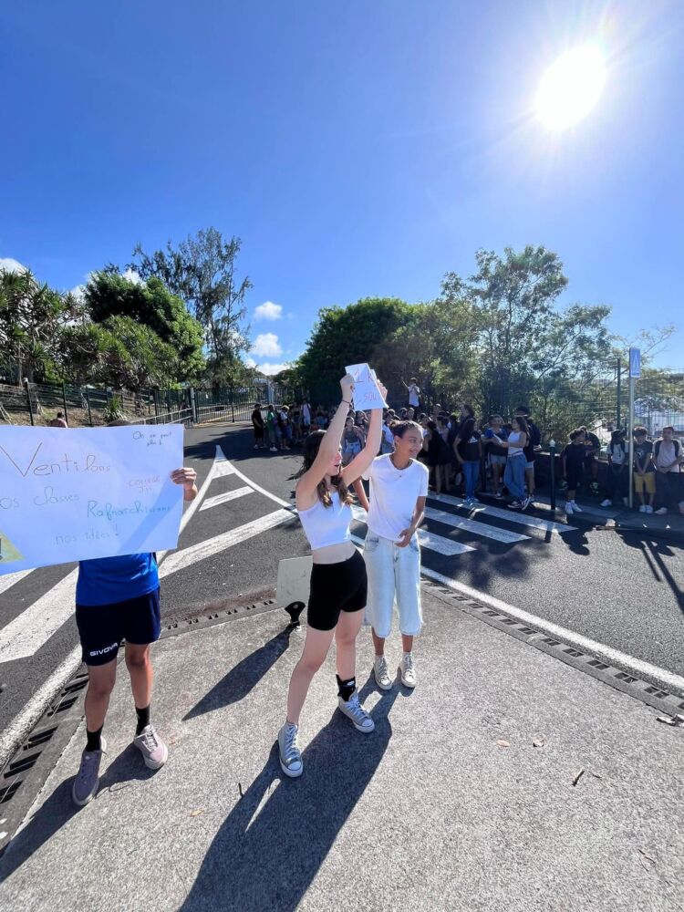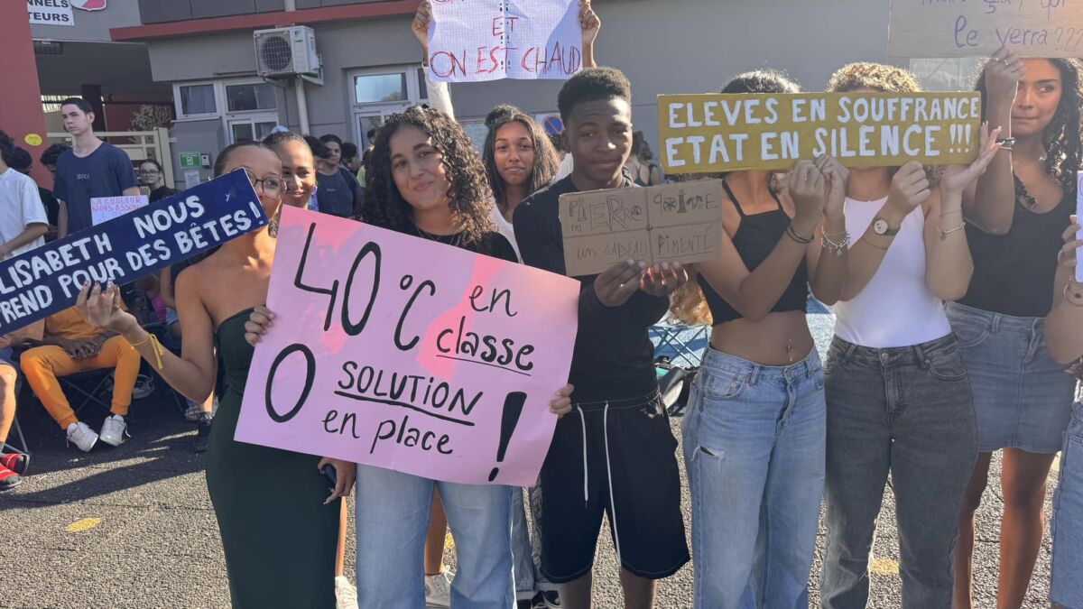 Mais les lycéens ne sont pas les seuls à subir cette chaleur accablante. Les élèves du collège Joseph Hubert, situé à quelques pas seulement du lycée, souffrent eux aussi dans des salles de classe mal ventilées. Face à la situation, une manifestation a également eu lieu devant leur établissement. Les jeunes, toujours aussi déterminés, ont brandi leurs pancartes pour dénoncer des conditions de travail inacceptables.