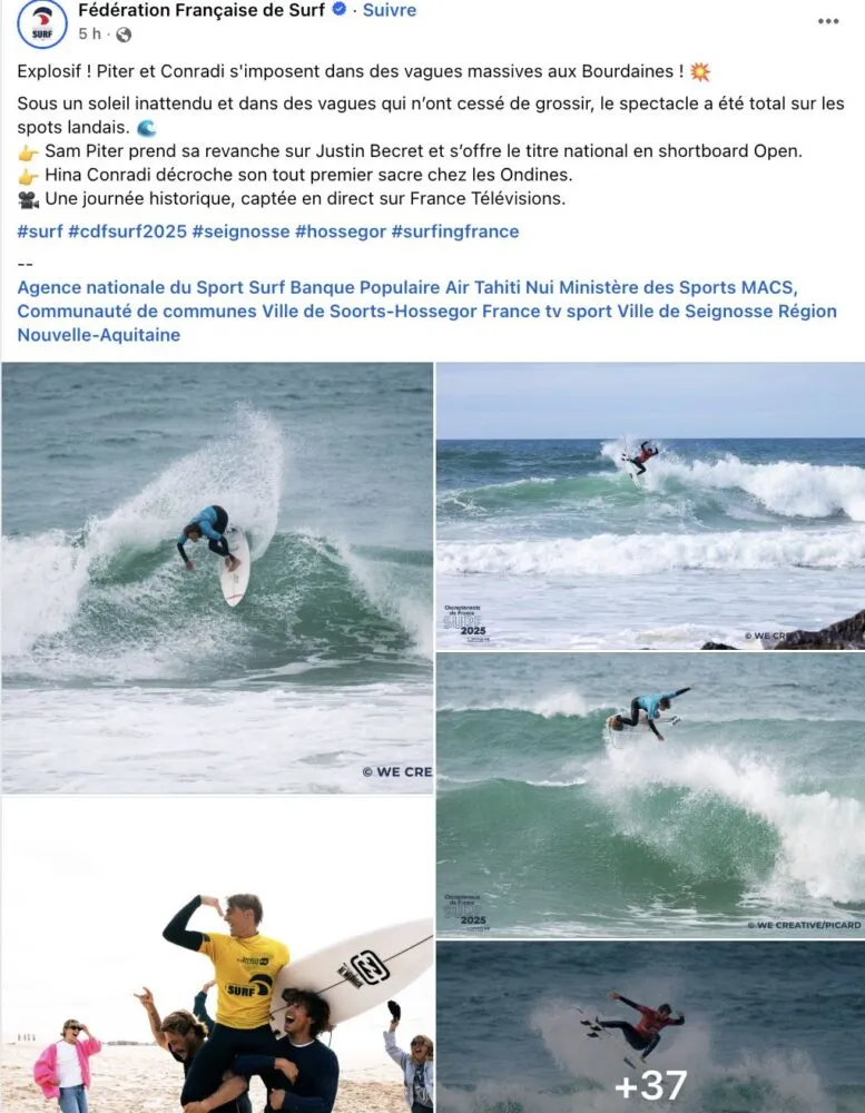 Une belle performance d’ensemble pour les représentants réunionnais, avec en point d’orgue le titre national d’Hina Conradi, symbole d’un surf réunionnais toujours aussi prometteur.