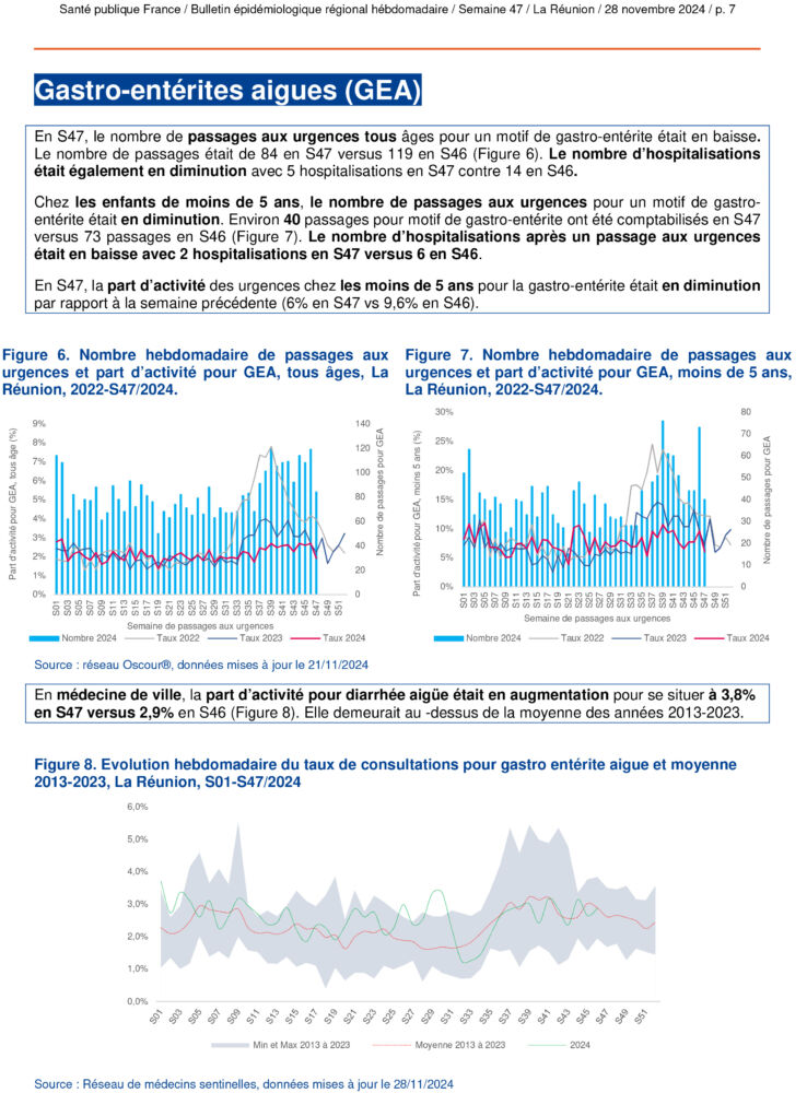 · GEA : Baisse des passages aux urgences et des hospitalisations notamment, chez les enfants de moins de 5 ans après une recrudescence la semaine précédente.