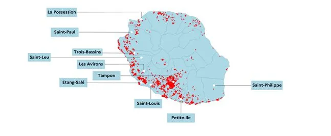 Avant le passage du cyclone Garance, il était constaté une forte progression de l’épidémie, surtout dans les villes du Tampon et de l’Étang-Salé. Les Avirons, Petite-Île, Saint-Philippe, Saint-Louis, Saint-Paul, Saint-Leu, La Possession et Trois-Bassins enregistraient aussi une hausse significative des cas.