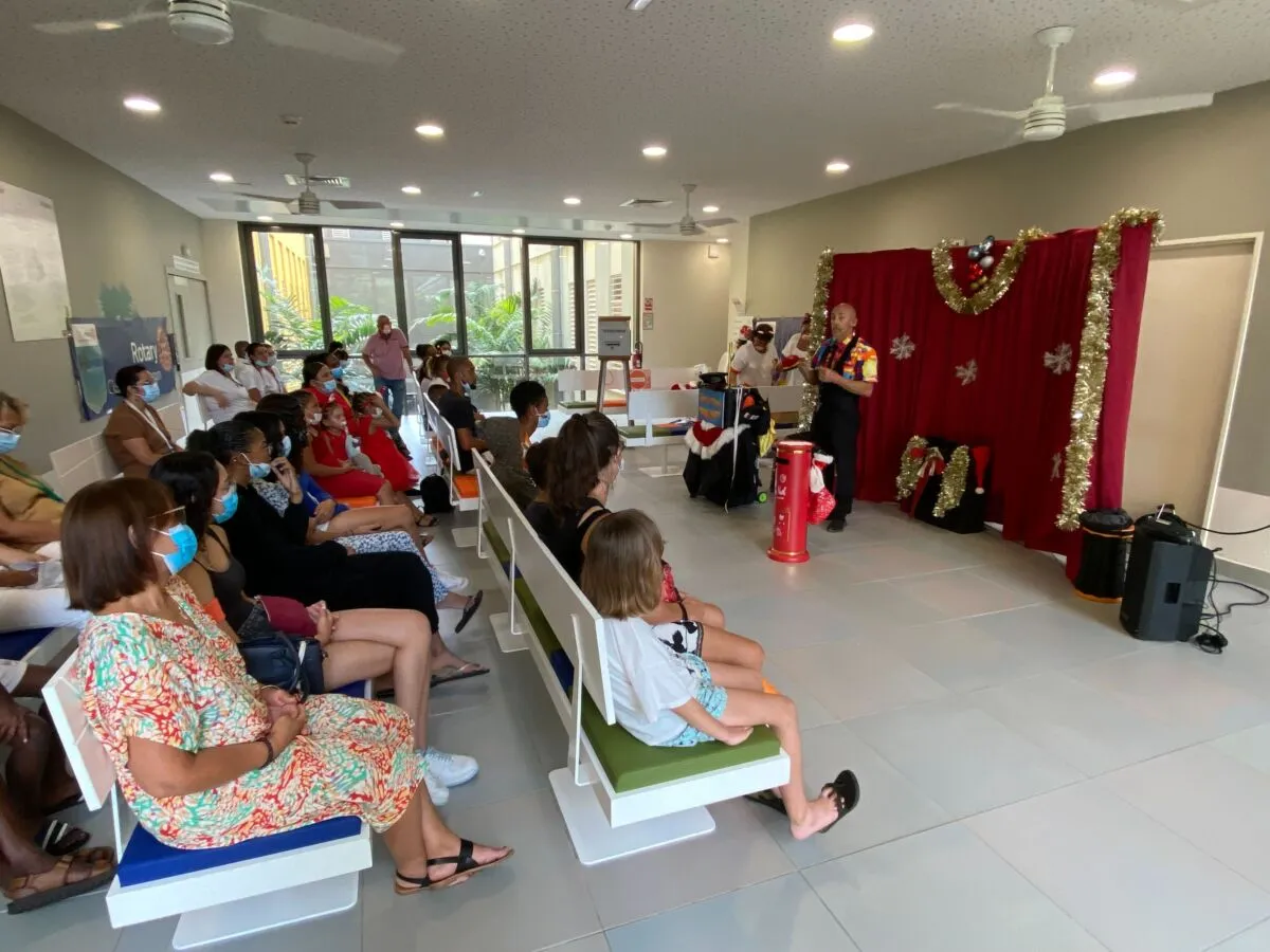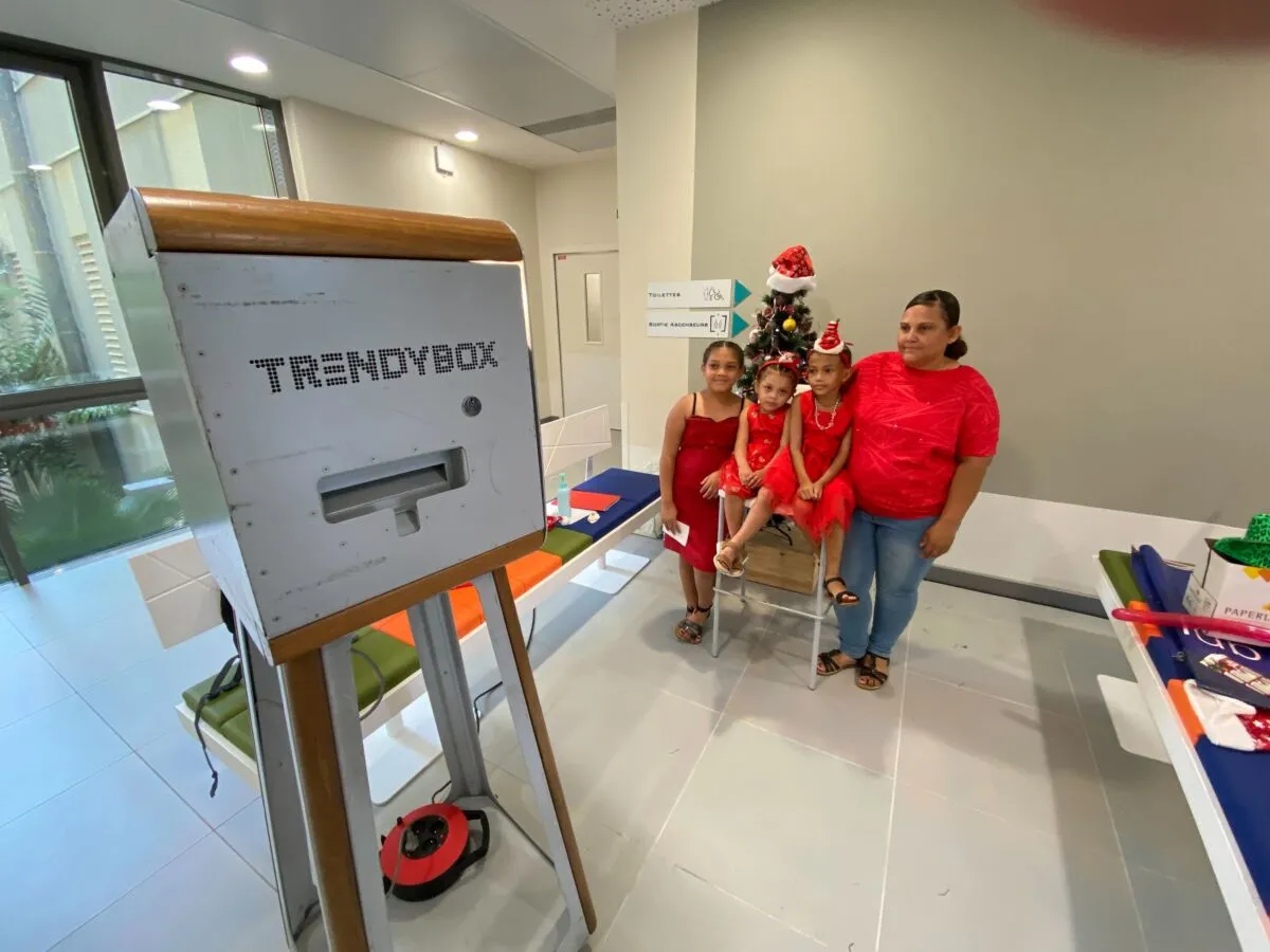différentes histoires et personnages du magicien. Les membres du Rotary Club de l’Hermitage Lagon et le personnel du Pôle Femme Mère Enfant du CHOR ont mis en place un photomaton pour une photo souvenir et une distribution de cadeaux.