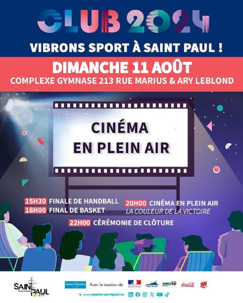 La ville de Saint-Paul vous invite à une journée inoubliable le dimanche 11 août, combinant sport et cinéma en plein air. La journée débutera à 15h30 avec la finale de handball, suivie à 18h00 par la finale de basket.