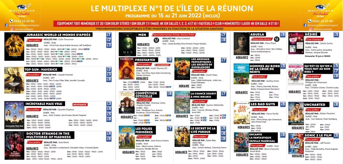 Envie de vous détendre ? On vous propose une sélection de films à découvrir dans les cinémas de l’île pour la semaine du 15 au 21 juin.