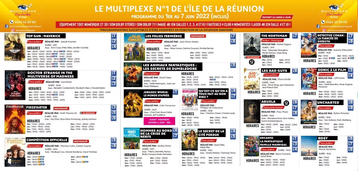Envie de vous détendre ? On vous propose une sélection de films à découvrir dans les cinémas du réseau Cinépalmes de l’île pour la semaine du 1er au 7 juin.