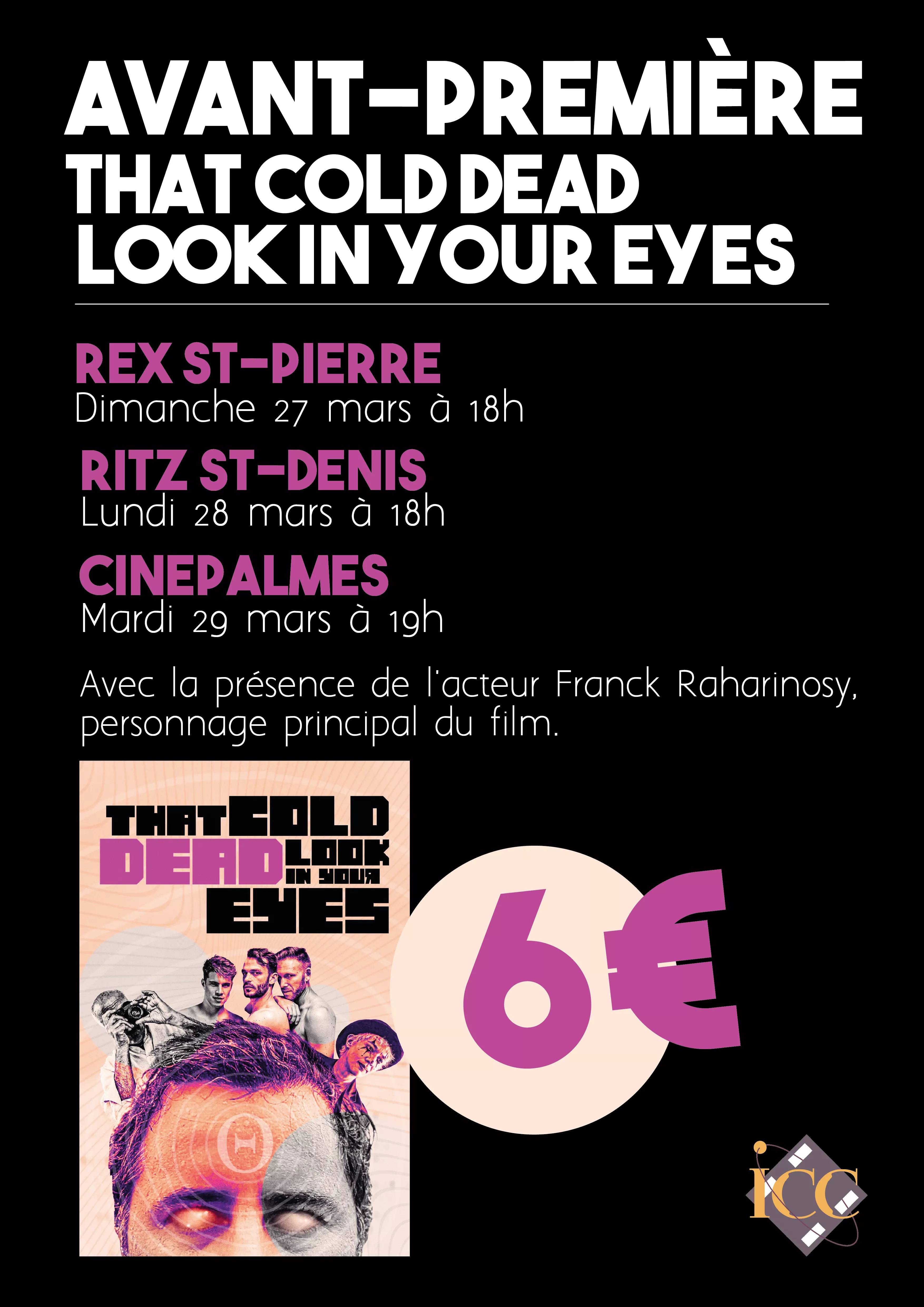 AVANT PREMIERE DE THAT COLD DEAD LOOK IN YOUR EYES, film d’horreur joué par Franck Raharinosy, acteur réunionnais qui sera présent sur les trois avant-première.