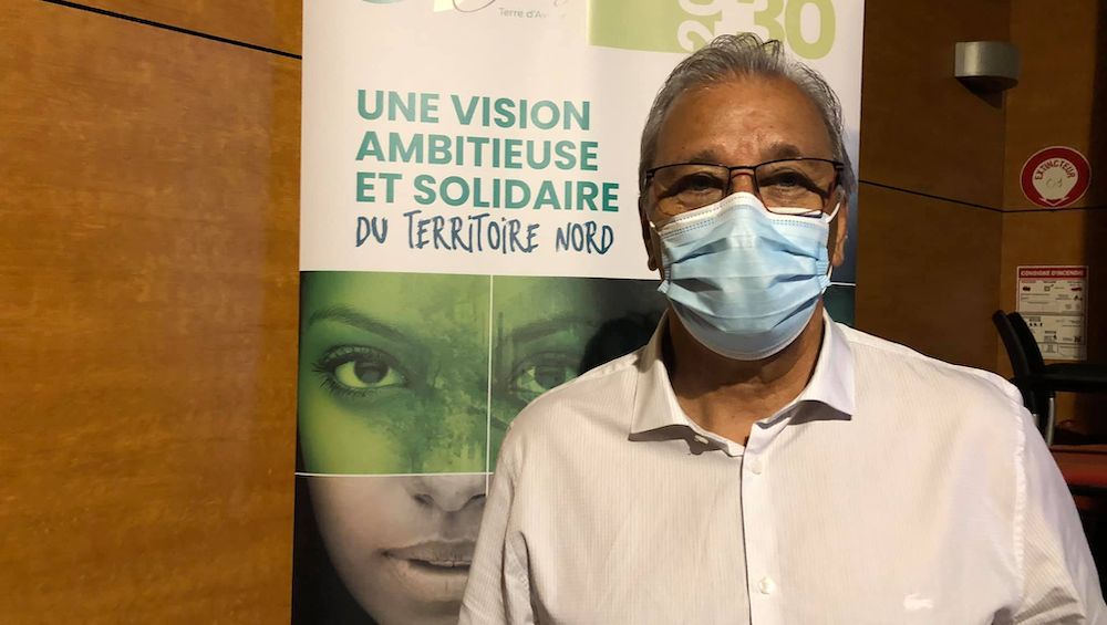 Maurice Gironcel rappelle quelques grands projets structurants qui s’inscrivent dans le cadre de cette « vision ambitieuse et solidaire du territoire Nord » qui regroupent les communes de Saint-Denis, de Sainte-Marie et de Sainte-Suzanne. Il est au micro d’Yves Mont-Rouge.