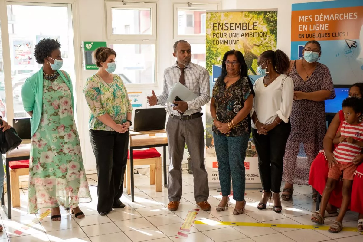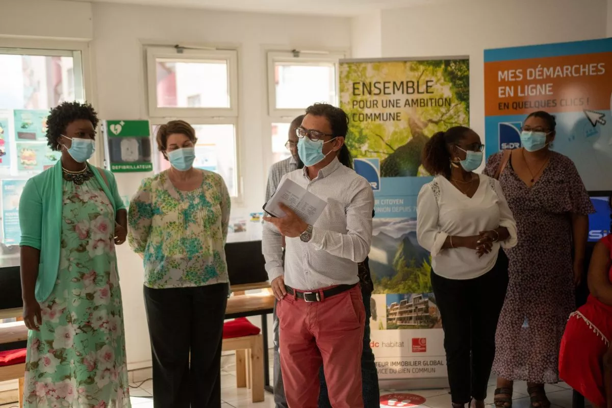 Bureau, ordinateur et terrarium végétal… 5 familles portoises ont reçu chacune un ‘P’tit Bureau’ le mercredi 4 mai en présence des adjoints au maire de Le Port : Mémouna Patel (Éducation), Ali Mihidoiri (Développement de l’économie sociale et solidaire) et Bibi Fatima Anli (Politique d’insertion professionnelle). Financé par la SIDR, l’équipement a été offert aux familles identifiées par le Programme de Réussite Éducative dans le cadre du Contrat de ville.