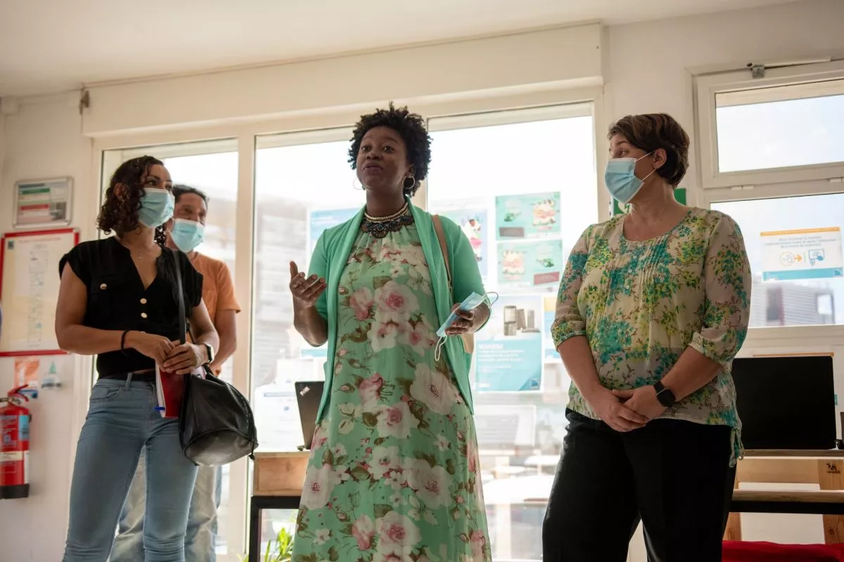 Ces associations sont engagées respectivement dans le recyclage de palettes, la couture, l’agriculture biologique et le réemploi d’ordinateurs. Les bénéficiaires ont reçu une première formation sur place.